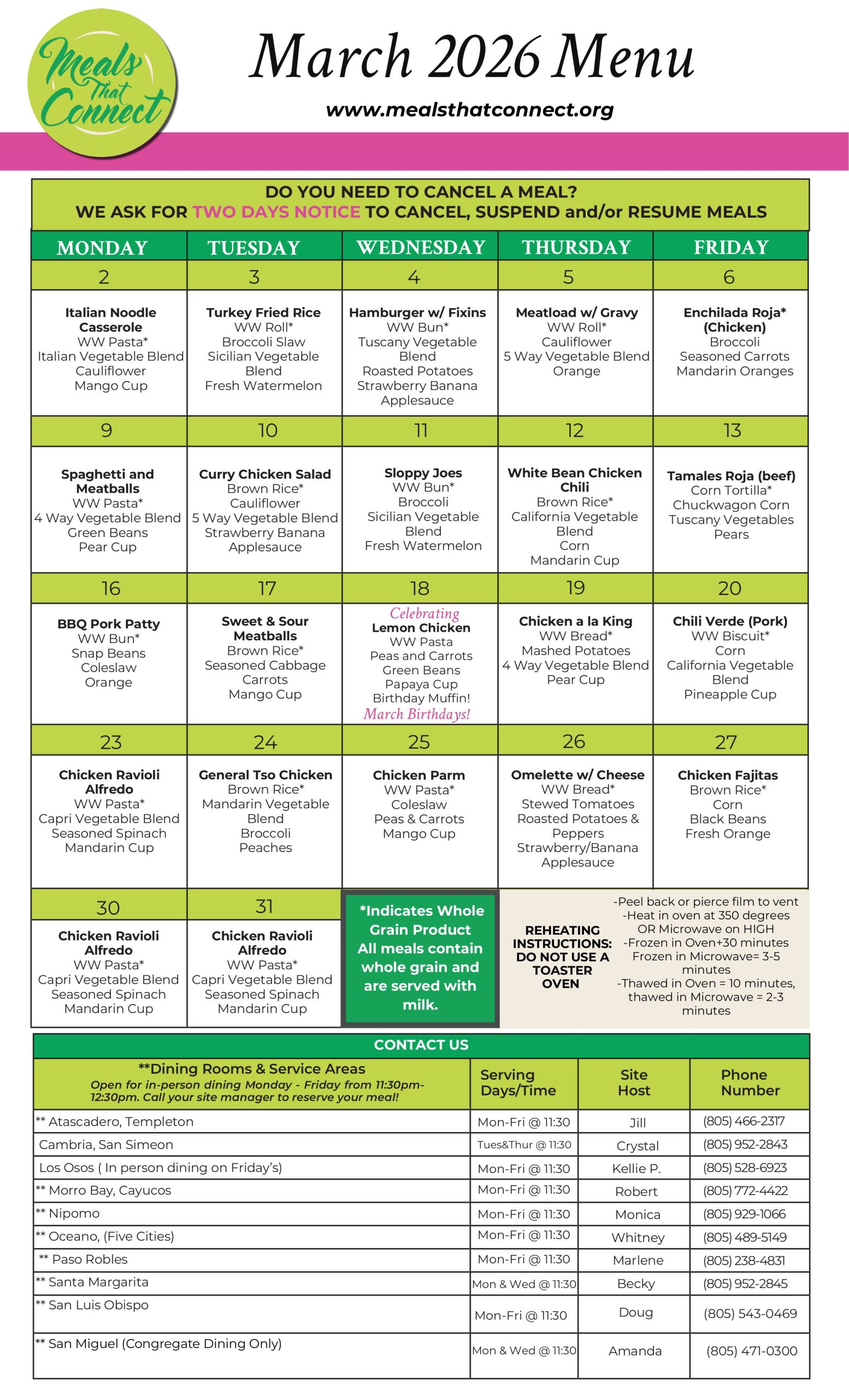 Medical Equipment and Food Bank information is available from South Bay Seniors People Helping People 805-528-2626